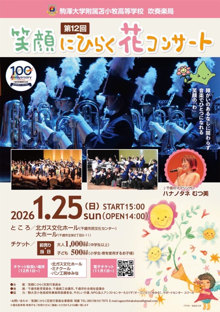 Sheltiesの活動 2025年10月29日 花コンサート🌸 お疲れ様です!2026年1月25日(日)15:00から「笑顔にひらく花コンサート」を行います!来年もまた千歳市民文化センターにて行いますのでお時間がある方、ぜひお越し下さい♪